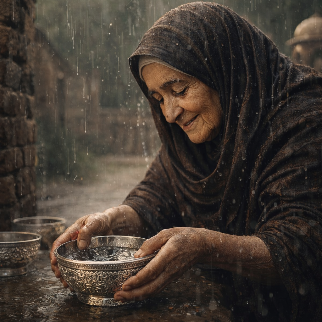 As a child, I used to watch my grandmother stand quietly during the rain. She would place simple bowls outside, letting the rain collect drop by drop قطرةً قطرةً. To her, rain was not ordinary water. She believed it carried purity, mercy, and healing. She would smile and say that rain touches the earth the way gentleness touches the heart. Softly. Without force. She believed that what comes from the sky carries a different kind of blessing بركة.