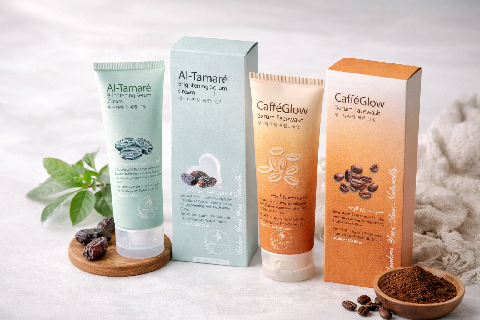 Inspired by nature, Rainelle Beauty brings together the energizing power of coffee and the nourishing essence of dates. This duo deeply cleanses, hydrates, and enhances skin radiance, leaving your complexion bright, balanced, and healthy-looking.